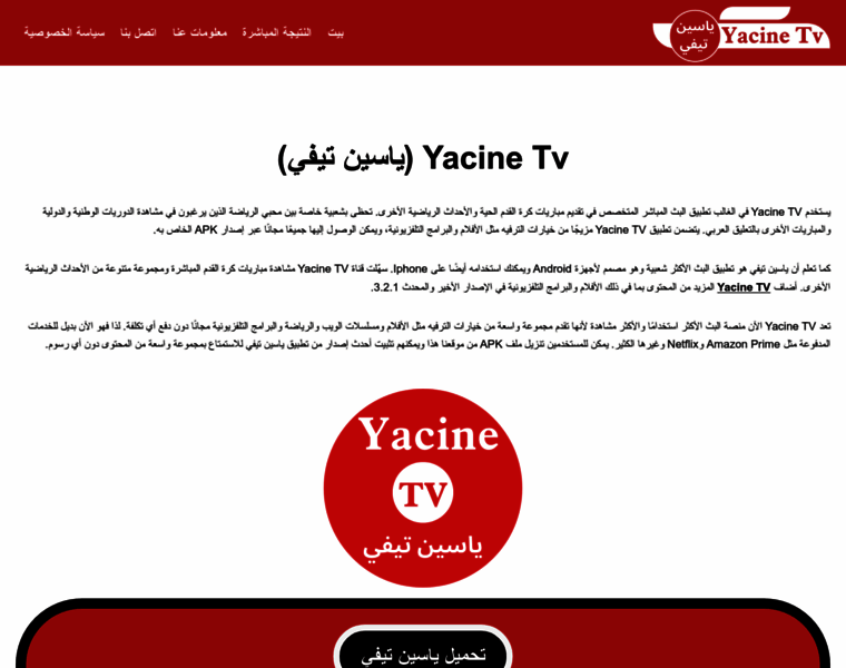 تحميل Yacine Tv للبث المباشر لمباريات اليوم اون لاين. ياسين تيفي هو أفضل تطبيق لمشاهدة البرامج التلفزيونية العربية ومباريات كرة القدم الحية.