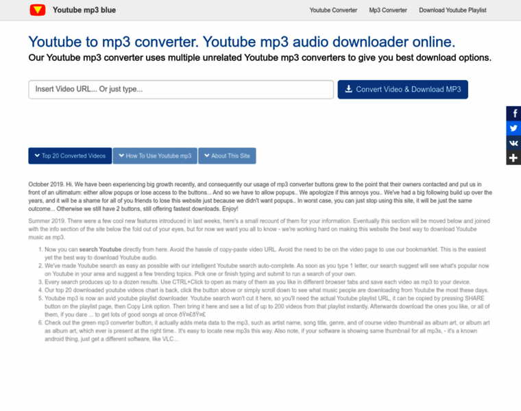 Convert and download videos & audio from YouTube to mp3 & mp4 format files for free at Ytmp3. Free YouTube to Mp3 converter online. No registration, no software needed.