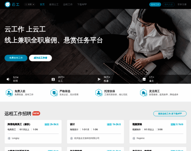云工-远程工作招聘,找线上兼职全职、自由职业者平台