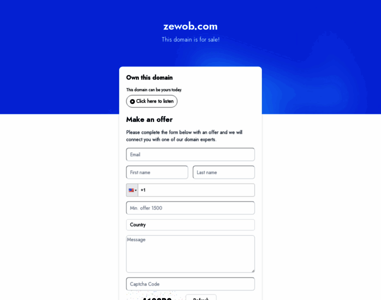 zewob.com is a premium domain and is currently available for sale, we are willing to speak with you regarding pricing.