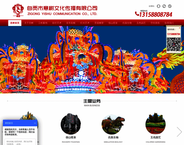 自贡意树文化传播有限公司电话:13158808784,是一家专业从事彩灯设计制作,花灯设计制作,灯会设计制作,春节彩灯,迎春灯会,灯会,元宵灯会设计制作,彩车花车、彩船花船、灯会灯展的专业彩灯制作公司及灯会制作公司,在彩灯制作,花灯制作,灯会制作,河灯制作,彩车制作,花车制作,彩船制作,元宵灯会制作等经营丰富,自贡意树传播有限公司设计的自贡彩灯,自贡花灯,春节彩灯,春节花灯,彩车彩船,仿真恐龙,灯会灯展等深受市民喜爱和客户满意,欢迎来电咨