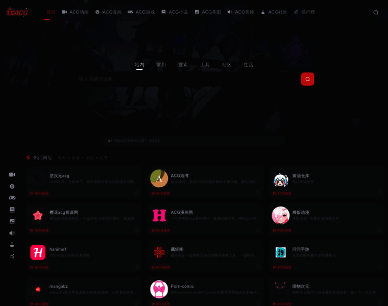 找ACG导航站是一个免费收录并分享最新最热门ACG动漫资源网站、漫画网站、动漫资源、动漫资讯、动漫音乐、萌网站、轻小说、ACG社区等二次元相关的综合性资源网站,为所有热爱ACG文化的朋友们带来更优质的内容体验!
