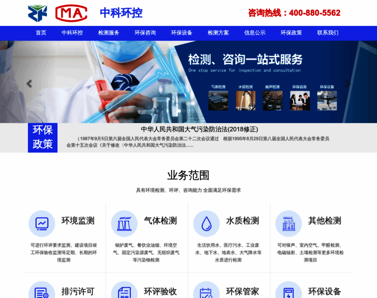 中科环控是环保部门认可的第三方环境检测机构,经过相关认证考核,具有CMA资质,可提供餐饮业油烟检测、水质(污水检测、饮用水检测)、锅炉烟尘、烟气和氮氧化物检测、噪声检测、室内空气甲醛检测等。
