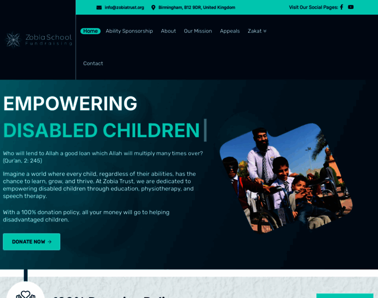 Zobia Trust supports disabled children through care, education, and medical support. Donate with confidence through our 100% Zakat policy.