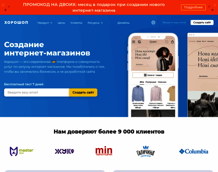 Создайте сайт магазина с Хорошоп — SEO-оптимизация, мобильная версия, готовые дизайны и современный UX, без кода, хостинг включен. Тест 7 дней бесплатно.